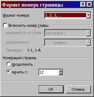 на панели форматирования: Форматирование страницы определяет вид всех страниц документа. Параметры: размер страницы, ориентация, размер полей. Файл => Параметры страницы…; окно Параметры страницы с вкладками Поля, Размер бумаги, Источник бумаги, Макет(в ХР этой вкладки нет). Поля – устанавливает размеры полей страницы (расстояние от краев страницы до текста). Флажок Зеркальные поля – левые и правые поля устанавливаются так, чтобы при печати на обеих сторонах внешние и внутренние поля страниц, образующих разворот, были одинаковые (при двусторонней печати). Переплет – величина захода на переплет. Размер бумаги – позволяет выбрать из списка стандартный размер бумаги и задать нестандартный. Ориентация – книжная и альбомная. Источник бумаги – указывает, из каких лотков будет подаваться бумага при печати. Макет – вертикальное выравнивание: 1. по верхнему краю – строки от верхнего поля; 2. по центру – по середине; 3. по высоте – межстрочный интервал меняется так, сто верхняя строка у верхнего поля, а нижняя – у нижнего; 4. по нижнему краю – строки от нижнего поля. Разделы – это части документа, характеристики, форматирования которых не зависят от характеристик форматирования других разделов документа. Разбивка документа на разделы – это возможность применения различных режимов форматирования к разным его частям. Весь документ – один большой раздел. Раздел форматируется тогда, когда меняются количество столбцов и стиль нумерации страниц. Файл => Параметры страницы…, вкладка Макет в списке применить, в котором выбирается по умолчанию пункт К выделенному тексту. Макет – определяет местоположение страниц раздела, колонтитулов и т.д. 2.18 Нумерация страниц и колонтитулы Верхний и нижний колонтитулы – это текст или графическое изображение, напечатанное вверху или внизу каждой страницы. 1. Нумерация страниц: Вставка => Номера страниц, в диалоговом окне списки Положение и Выравнивание. Кнопка формат выбирает Формат номера страницы. 2. Колонтитулы: