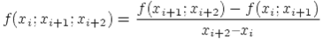 Отношение Для произвольного участка [xi, xi+2] разделенная разность второго порядка (k=2) равна