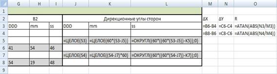 Рис.1.3 Результаты в Turbo Pascal. Содержание фаила «rezultat.txt»: Приращения для задания А По оси X 2062.33 По оси Y -1180.94 Приращения для задания B По оси X -1817.60 По оси Y -1208.58 Румб для задания А 0.520047 Румб для задания А 0.586801 Дирекционный угол и четверть для задания А: IV четверть Дирекционный угол равен(в радианах): 5.763 Дирекционный угол и четверть для задания B: III четверть Дирекционный угол равен(в радианах): 3.728 Горизонтальное расстояние между точками равно(для задания А): 2376.52 Горизонтальное расстояние между точками равно(для задания B): 2182.74 Дирекционный угол равен(для задания А): 330 градусов 12 минут 12 секунд Дирекционный угол равен(для задания B): 213 градусов 37 минут 16 секунд 1.8 Табличные вычисления MS Excel