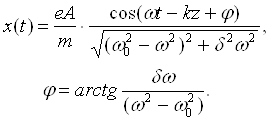 Здесь m – масса электрона, e – его заряд, R – параметр, характеризующий затухание электронных колебаний, eE – сила действующая на электрон со стороны поля, F – сила, действующая на электрон со стороны атомного ядра (возвращающая сила ядра):