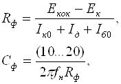 подразделе 4.4. Обычно напряжение источника питания При параллельном включении фильтрующей цепи ее номиналы определяются из следующих соотношений: