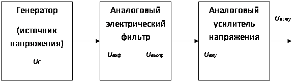 Рис. 1 Рис. 1 Цифровые функциональные узлы не будут рассматриваться по следующим причинам: - необходимо дополнительно применять АЦП и ЦАП; - разработка “цифровых схем” будет рассмотрена в следующих дисциплинах. Решение основных задач данной курсовой работы можно проводить в различной последовательности. Выберем следующий порядок расчетов: а) разработка схем электрического фильтра, согласованного с источником импульсной последовательности и с усилителем напряжения; б) разработка схем (схемы) усилитель напряжения; в) анализ спектра “сигнала” генератора входного напряжения; г) анализ прохождения “сигнала” генератора через электрический фильтр и усилитель. Рассмотрим “общие