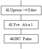 äàâëåíèÿ (áë. 17 – 21). Ïîñëå ÷åãî äåëàåòñÿ äåêðåìåíò ÿ÷åéêè ïàìÿòè del. Åñëè del  íà÷àëå ïðîöåäóðû, â áëîêå 30 ïðîèñõîäèò ñðàâíåíèå íàïðÿæåíèÿ ñíèìàåìîãî ñ àêòèâíîãî ôèëüòðà (âõîä ÐÒÂ1) ñ çàäàííûì ïîðîãîì íàïðÿæåíèÿ (1,75V). Åñëè ïîðîãîâîå íàïðÿæåíèå áîëüøå íàïðÿæåíèÿ ñíèìàåìîãî ñ ÀÔ, òî ïðîãðàììà çàöèêëåâàåòñÿ è îæèäàåò êîãäà íàïðÿæåíèå ñ ÀÔ áóäåò áîëüøå ïîðîãîâîãî. Ïðè÷¸ì, åñëè â òå÷åíèè 5 ñåêóíä ïðîãðàììà íàõîäèòñÿ â öèêëå, òî èçìåðåíèå ïðåêðàùàåòñÿ è âûâîäèòñÿ ñîîáùåíèå îá îøèáêè. Åñëè Upress1>Ïîð, òî ïðîèñõîäèò ñáðîñ ÿ÷åéêè ïàìÿòè OVSEC, è äàëåå ïðîèñõîäèò îïðåäåëåíèå çíà÷åíèÿ àìïëèòóäû (áë. 33 – 37). Êàê òîëüêî, àìïëèòóäà áóäåò îïðåäåëåííà, ïðîèñõîäèò ñáðîñ è ïåðåçàïóñê òàéìåðà, à òàêæå îáíóëåíèå SEC10 è SEC (áë. 38). Ïîñëå ÷åãî çíà÷åíèå àìïëèòóäû çàíîñèòñÿ â ÿ÷åéêó ïàìÿòè ÀÌÐ2 (áë. 39). Äàëåå ÀÖÏ ïåðåêëþ÷àåòñÿ íà âõîä ÐÒÂ0 (áë. 40), è ðåçóëüòàò âòîðîãî ïðåîáðàçîâàíèÿ çàíîñèòñÿ â UDAV (ýòîò ðåçóëüòàò ïîêàçûâàåò äàâëåíèå â ìàíæåòå), ïîñëå ÷åãî ÀÖÏ îáðàòíî ïåðåêëþ÷àåòñÿ íà âõîä ÐÒÂ1. Êàê òîëüêî ÀÖÏ ïåðåêëþ÷èòñÿ íà âõîä ÐÒÂ1, ÿ÷åéêà ïàìÿòè PULSE, â êîòîðîé íàõîäèòñÿ êîë-âî ïóëüñàöèé, èíêðåìåíòèðóåòñÿ. À äàëåå èäåò ïðîöåäóðà âû÷èñëåíèÿ ïðîèçâîäíîé àìïëèòóäû. Ïðîèçâîäíàÿ âû÷èñëÿåòñÿ ïî ôîðìóëå: