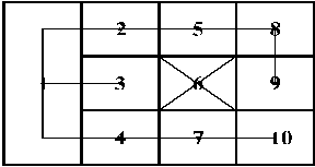 Расположим расстояния между контактами в порядке возрастания, используя рисунок 5 и таблицу 11 для расстояния равного 1,2,3,4: 1: d1-2, d1-3, d1-4, d2-3, d2-5, d3-4, d3-6, d4-7, d5-6, d5-8, d6-7, d6-9, d7-10, d8-9, d9-10; 2: d1-5, d1-6, d1-7, d2-4, d2-6, d2-8, d3-5, d3-7, d4-6, d4-10, d5-9, d6-8, d6-10, d7-9, d8-10; 3: d1-8, d1-10, d2-7, d2-9, d3-8, d3-10, d4-5, d4-9, d5-10, d7-8; 4: d1-9, d2-10, d3-9, d4-8, d5-7.