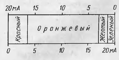 Диаграмма зависимости цвета свечения прибора в различном соотношении значений тока через p-n переходы: