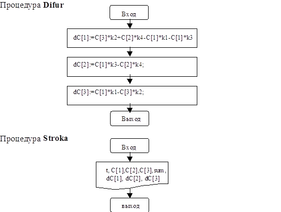 Данная процедура вычисляет производную изменения концентрации везества за единицу времени. Процедура STROKA: