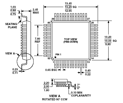 Рисунок 2.2 – Внешний вид корпуса ADuC812 В таблице 2.1 приведено расположение контактов контроллера ADuC812. Таблица 2.1 – Расположение контактов ADuC812