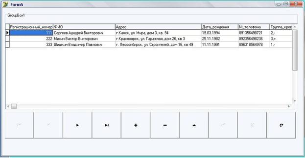 Рисунок 10 - Запрос: Поиск пациентов по группе крови