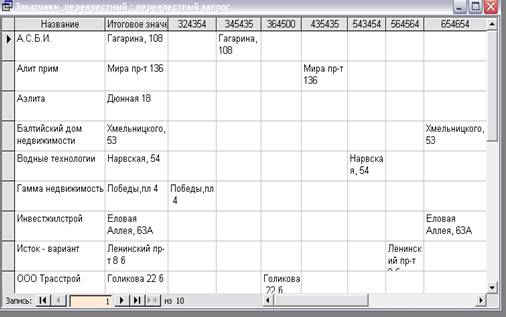 3.3.4 Перекрестный запрос Перекрестные запросы предназначены для группирования данных и представления их в компактном виде. Запрос можно создать самостоятельно или воспользоваться Мастером. Из перекрестного запроса, созданного мной можно определить, стоимость каждого программного продукта по столбцу обновлений. В режиме конструктора такой запрос имеет вид: