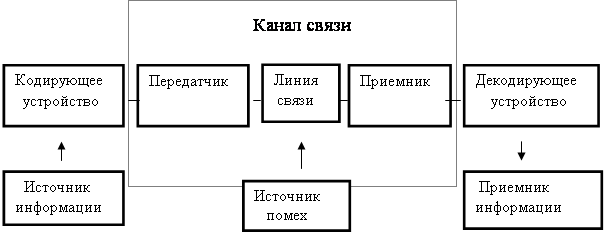 Рис. Схема системы передачи информации Любая ЭВМ также представляет собой информационную систему, которую можно рассматривать как канал преобразования информации (см. рис. 2). На схеме введены обозначения: ИИ и ПИ – соответствен-но источник и приемник информации; ЦП – центральный процессор; ОП – оперативная память; Вх. У и Вых. У – соответственно входное и выходное устройства, которые осуществляют функции кодирования и декодирования.