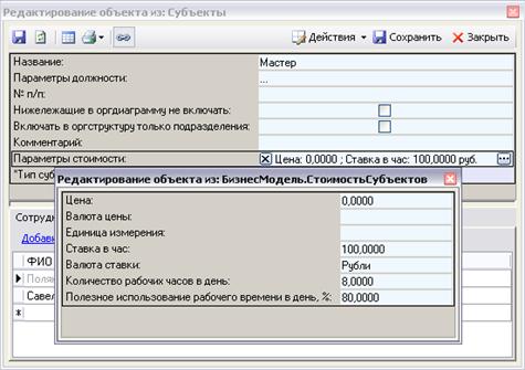 Рисунок 4.9-Заполнение параметров стоимости ресурса Описание параметров стоимости ресурсов представлено в таблице 4.1: Таблица 4.1- Описание параметров стоимости ресурса