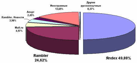 Yandex виконує пошук по словяномовній частині Інтернету з урахуванням морфології словянських мов. Маючи могутній механізм підбору сайтів під запити, ця пошукова машина допомагає знайти найбільш відповідні веб-сторінки. Яндекс щодня переглядає сотні тисяч веб-сторінок у пошуках змін або нових посилань, і їх база постійно зростає. Слово "Яndex" означає "Мовний index", або, якщо по-англійськи, "Yandex" - "Yet Another indexer". За 10 роки публічного існування Яndex виникали і інші тлумачення. Наприклад, якщо в слові "Index" перекласти з англійського першу букву ("I" - "Я"), вийде "Яndex". Офіційно пошукова машина Yandex.Ru була анонсована 23 вересня 1997 року на виставці Softool. Вже тоді пошуковик мав певні переваги - можливість перевірки документів на унікальність, облік морфології словянських мов, можливість пошуку з врахуванням відстані (наприклад, при пошуку точного словосполучення). Основною відмінною рисою Yandex є ретельно розроблений алгоритм оцінки відповідності відповіді запиту (релевантності), який враховує не лише кількість слів запиту, знайдених у тексті, але і "контрастність" слова (його відносну частоту для даного документа), відстань між словами, і положення слова в документі. Згідно даних глобальної статистики Рунету, сьогодні більше 50% пошукового трафіку генерується саме цим пошуковиком (для порівняння, на долю Rambler'a доводиться близько 20%, і ще менше - на долю Google'a). Реєстрація відбувається за адресою http://yandex.ru/addurl.html. В Яндекса достатньо швидкий пошуковий робот. Завдяки ньому реєстрована сторінка з'явиться в пошукових результатах протягом 2-4 годин. Але це лише первинна індексація. Після повної індексації, вона може зникнути з пошукових результатів, якщо пошуковий робот визнає її за спам. Тому положення web-сторінки в результатах пошуку потрібно відстежувати до тих пір, поки не пройде повна індексація. Перелік результатів може мінятися залежно від завантаженості серверів, оскільки база даних Яндекса має кластерну структуру і рознесена на декілька серверів. Яндекс любить документи середніх розмірів, насичені текстом (статті і т.п.). Слід помірно повторювати ключові слова. Ключові слова можна писати в описі, але вага слів у цьому тегу є нижчою. Добре індексуються сторінки, що створено за допомогою скриптів .cgi, .php. Це стосується гостьових книг, форумів і т.п. Для індексації решти (окрім головної) сторінок сайту потрібно приблизно 2 тижні. Хороших позицій допомагають досягати ключові слова в мета-тегах, де варто зазначати слова, які зустрічаються в тексті сторінки. Мета-теги, використовуються також і для видачі опису сторінки в результатах пошуку. Це потрібно враховувати при його складанні, оскільки, користувач по цьому опису приймає рішення відвідати вас, чи ні. Важливо розміщувати ключові слова і в тегу "title", заголовках (h1-h6), змісті сторінки, "ALT"-тегах. Для визначення релевантности Яндекс використовує Зважений Індекс Цитування, який впливає на рейтинг в результатах пошуку. Звичайний Індекс Цитування використовується тільки при сортуванні сайтів в каталозі Яндекса. RAMBLER.RU (Спрощено - http://www.r0.ru)Цей пошуковик займає сьогодні друге місце серед пошуковиків Ренета. Він був першою пошуковою програмою, що створено спеціально для російського Інтернету програмістом компанії Stack Ltd Дмитром Крюком у 1996 році. Слово "Rambler" перекладається як «гуляща людина», «бродяга» по Інтернет