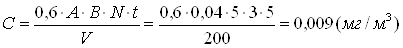 где: A - удельное образование аэрозоля свинца; B - количество долей в минуту; N - количество рабочих мест; t - длительность сборки изделия, час; V - объем помещения, м3; Зададимся следующими значениями параметров: A = 0,04мг / 100 долей; B = 5; N = 4; t = 5 часов; V = 200 м3. Тогда: