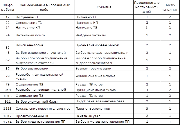 Количество автомобилей на дорогах стремительно увеличивается с каждым днем. В сегодняшних условиях даже опытный и аккуратный водитель не застрахован от ДТП, которое может произойти не по его вине. К сожалению, установить истинную картину ДТП и определить меру вины участников происшествия бывает вовсе непросто. Решить эту проблему смогла бы автомобильная система видеонаблюдения ведущая оперативную видео съемку непосредственно из машины участника движения. Исходя из этого разработка такой системы является очень актуальной. 12.1 Расчеты параметров СГ Определение продолжительности и трудоёмкости работ. Продолжительности и трудоёмкости работ занесены в таблицу 11.1.1. Таблица 12.1.1 Результаты определения продолжительности и трудоёмкости работ
