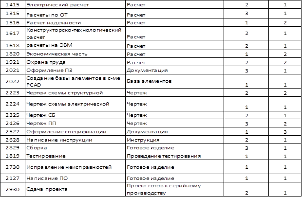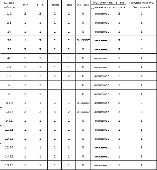 В таблице 12.1.1 приведены данные по продолжительности и трудоемкости работ. Расчет коэффициента напряжённости. Продолжение таблицы 12.1.1