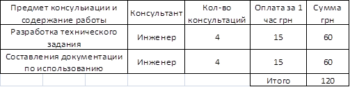 Рис 11.1.3 Сетевой график. 12.2 Расчеты сметы затрат Трудоёмкость выполняемых работ Полная трудоемкость содержит совокупные затраты труда всего промышленно-производственного персонала предприятия на производство продукции, выполнение работ и оказание услуг. Основная заработная плата исполнителя Примем, что месячный оклад инженера – 1500 грн. Поскольку в месяце 21,5 рабочих дней, посчитаем дневную оплату: Инженер: Дневная оплата: 1500/21.5 = 69,7 грн Определив дневную оплату и используя данные с пункта 2.1, посчитаем сумму зарплаты Инженер: Сумма зарплаты: 69,7 *52 = 3624,4 грн Дополнительная заработная плата Дополнительную заработную плату определяют по нормативу, установленному в процентах от основной зарплаты штатных работников (без совместителей). Значение норматива дополнительной заплаты принимается по данным организации, в условиях которой планируется выполнение работы (для нашего случая 7.5%). Инженер: 3624,4 * 0.075 = 271,83 грн Отчисление на социальные мероприятия К этому элементу принадлежат затраты осуществляемые в порядке и размерах, предусмотренных законодательством Украины: · на обязательное государственное пенсионное страхование – 33,2%; · на обязательное социальное страхование – 1,5%; · на обязательное государственное страхование на случай безработицы - 1,3%; · страхование от несчастного случая - 1,0% Всего отчисление 37% (за действующими на 01.01.2009г. нормативами). Инженер: (3624,4 + 271,83)*0,37 = 1441,6 грн Консультации Консультации, связанные с необходимостью получения сведений по отдельным теоретическим вопросам, решение которых требует привлечения специалистов в большинстве случаев со стороны. Размер оплаты за один час должен быть принят по новым тарифам. Таблица 12.2.2 Размер оплаты за один час консультации