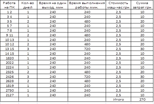 Материалы для выполнения работ по договору Если выполняется НИР расчетного характера, при определении затрат по этой статье необходимо учитывать в основном канцелярские принадлежности и т.д. Эти затраты принимают в размере 3 -- 5% основной заработной платы. В нашем случае расходы на материалы примем 4%, тогда получим: (3624,4)* 0.04 = 144,98 грн. Накладные расходы К накладным расходам относят заработную плату с начислениями административно-хозяйственного персонала, расходы па охрану труда и технику безопасности, транспорт и т.д. Рассчитывать их следует по нормативам организации, в которой выполняется НИР. На данном предприятии сумма накладных расходов составила 140% от основной заработной платы: (3624,4)*1,4 = 5074,16 грн Экспериментально-производственные расходы Таблица 12.2.3 Затраты на оплату машинного времени