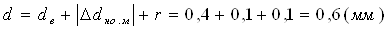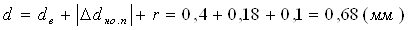 где dе – диаметр вывода элемента, dе= 0,4 (мм), выбранный согласно ГОСТ 10317-79. dно – нижняя граница между минимальным диаметром отверстия и максимальным диаметром вывода, (dно.м.= 0,1 мм для монтажных отверстий и dно.п.= 0,18 мм – для переходных отверстий) rм = 0,1 мм. В результате, для монтажных отверстий получаем
