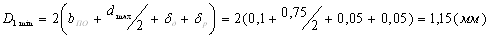 где bПО – расстояние от края отверстия до края площадки, bm = 0,1 мм; δд - погрешность размещения центра отверстия, δд = 0,05 мм; δр - погрешность размещения контактных площадок, δр = 0,05 мм dmax – максимальный диаметр монтажного отверстия: