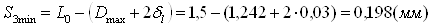 где L0 – расстояние между центрами двух элементов L0 = 1,524 мм; dl – допуск на размещение проводников dl = 0,03 мм; Остальные параметры были вычислены раньше: Dmax = 1,242 мм δp = 0,05 мм δ1 = 0,05 мм bmax = 0,2425мм Имеем,
