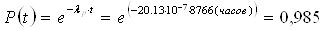 Для учета влияния теплового режима работы на интенсивность отказов ЭРЭ вводят температурный коэффициент at Влияния условий эксплуатации на интенсивность отказов учитывает коэффициент aэ. Он характеризует отношение интенсивности отказов ЭА различного назначения к лабораторной интенсивности отказов. Согласно техническому заданию, проектируемое устройство относится к стационарной наземной ЭВА и значение aэ = 10 Из таблицы 6.5.1 определяем результирующую интенсивность отказов: lр = 20,13·10-7 Далее определим среднее время наработки до первого отказа