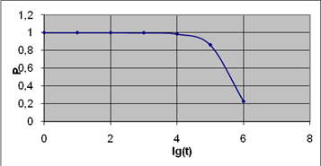 Тогда вероятность отказов Q(t) = 1-0,985 = 0,015 Построим график вероятности безотказной работы печатного узла в зависимости от времени работы: