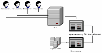 Рис. 2.2. Структура телефонной сети АГУ Назначение: городская оконечная, опорно-транзитная АТС Характеристики: · цифровое качество связи · значительное сокращение эксплуатационных расходов за счет: - организации единого ЦТО (сопряжение модулей АТС и выносов осуществляется по цифровому стыку Е1 с сетевым протоколом ТОS); - простота конфигурирования, реконфигурирования, обслуживания и ремонта; - круглосуточного необслуживаемого режима работы · высокая "живучесть" за счет модульной структуры АТС: неисправность одного модуля оказывает только ограниченное влияние на всю систему, из-за наличия в каждом модуле своей коммутационной машины с рабочими, тестовыми и сервисными программами · для построения АТС любой конфигурации используется 2 вида ячеек · абонентский комплект на 10 АЛ, расширение кратно 10 · наличие прямых, удаленных и транзитных абонентов · наличие 4-х потоков Е1 для коммутации абонентских линий и 4-х потоков Е1 для коммутации внешних каналов в каждом базовом модуле · полный набор услуг и сервиса для абонентов разного типа АТС · безвозмездная передача очередных версий программного обеспечения Отличительные особенности: · прямое включение (без конвертации) существующих АТС с различными типами сигнализации (ОКС №7, EDSS1, 2ВСК, 1ВСК); · максимальное использование существующего оборудования с различными линейными кодами (NRZ, AMI, HDB-3); Таблица 2.1. Параметры станции ТОС 120