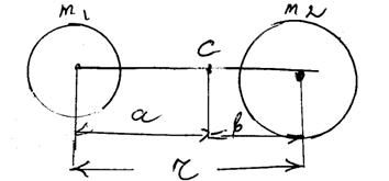 Мал. Модель жорсткого ротора (двохатомна молекула). Координата центра ваги такої молекули с (мал.) може бути знайдена при спільному розв’язанні двох таких рівнянь: