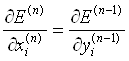 где Расчеты по вышеприведенным формулам позволяют выполнить коррекцию весов для нейронов последнего слоя. Для получения формул для других слоев можно воспользоваться формулой производной функции ошибки по входному сигналу (n – номер слоя):