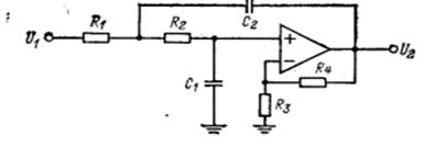 Рис. 1.5.4. Амплитудно-частотная характеристика инверсного фильтра Чебышева шестого порядка 1.6 Фильтры нижних частот на ИНУН Схема на ИНУН, реализующая функцию фильтра нижних частот Баттерворта или Чебышева второго порядка вида