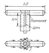 теоретического материала элементом антенной решетки выберу полуволновый ( Поскольку в реальных вибраторах ток по плечам протекает несимметрично, то во избежание искажений диаграммы направленности, падения КНД и ухудшения согласования (из-за изменения входного сопротивления излучателя) важно выбрать симметрирующее устройство, которым может служить четвертьволновая щель, U-колено и др. Следует отметить, что