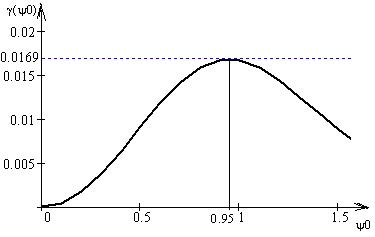 Построим график функции γ(Y0), по максимуму которого определим угол раскрыва зеркала: