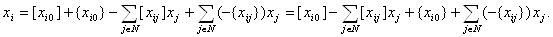 оптимальному рішенні x(£k, C) координата Перевіримо умову правильності. Для цього покажемо, що будь-яке припустиме рішення задачі (27-30) задовольняє умовам (31, 32). Запишемо розкладання для координати припустимого рішення задачі (27-30) по небазисним змінним