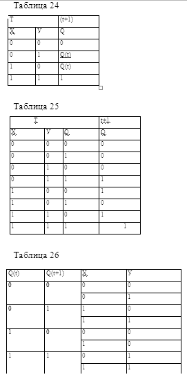 С учетом доопределений входных переменных матрицы переходов некоторых стандартных триггеров имеют вид (таб. 28.) Таблица 28.Матрицы переходов триггеров