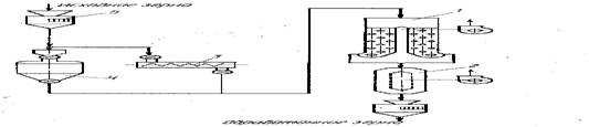 ВЫДЕЛЕНИЕ ПРИМЕСЕЙ ИЗ ЗЕРНОВОЙ МАССЫ Выделение крупных, мелких и легких примесей. Основные машины для выделения этих примесей: воздушно-ситовые сепараторы, крупосортировки, рассевы. Разные размеры и форма зерна обусловливают и использование в воздушно-ситовых сепараторах сит с различными отверстиями. Обычно, если зерно удлиненной формы, сита для выделения примесей имеют продолговатые отверстия, если зерно округлой формы, используют сита с круглыми отверстиями. Размеры отверстий сит выбирают в зависимости от размеров зерна. Для лучшего просеивания зерна и примесей изменяют установочные и кинематические параметры. При очистке трудносыпучего зерна (например, риса, овса) увеличивают угол наклона сит, амплитуду или частоту колебаний. Наоборот, для проса, гороха требуется существенно уменьшить угол наклона сит и также снизить кинематические параметры. Для выделения примесей из гречихи широко применяют сита с треугольными отверстиями. Имеющая трехгранную форму гречиха проходит через отверстия сит, а равновеликие примеси, имеющие другую форму, напри мер шаровидную или цилиндрическую, через отверстия этих-сит не проходят. Однако более мелкие примеси мо гут пройти через отверстия сит вместе с зерном, поэтому обычно гречиху в процессе очистки делят на две-три фракции на ситах с круглыми отверстиями, после чего зерно каждой фракции очищают от примесей на ситах с треугольными отверстиями соответствующих размеров. Фракционный способ очистки используют и в новых сепараторах для риса. В воздушно-ситовых сепараторах изменяют скорость воздушного потока применительно к конкретно музерну. Естественно, что если скорость витания семян гороха или кукурузы выше, чем, например, овса, то и скорость воздушного потока в пневмоканалах должна быть более высокой. Для выделения примесей, особенно мелкого зерна, при меняют также просеивающие машины крупосортировки и крупяные рассевы А1-БРУ. Крупосортировка имеет относительно небольшую просеивающую поверхность (4 м2) при больших габаритах, поэтому их устанавливают при сортировании отходов или для небольшого количества продуктов. Крупосортировки состоят из двух наклонных сит и могут иметь две технологические схемы (рис. XI-1). Наиболее перспективны крупяные рассевы, просеивающая поверхность сит которых в 3,5 раза больше, чем у крупосортировок, при несколько меньших габаритах. Крупяные рассевы выполнены на базе шкафного рассева Al-ЗРШ; имеют 14 ситовых и четыре технологические схемы (рис. XI-2). Такие рассевы применяют не только для очистки, но и для калибрования зерна, т. е. разделения его на фракции по размерам, а также для разделения продуктов шелушения, контроля крупы и т. д.