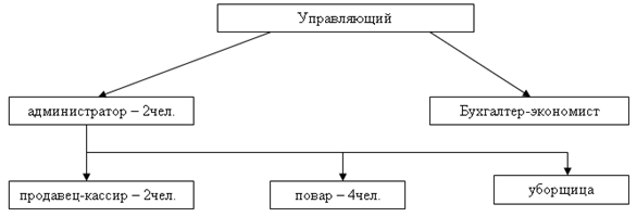Схема расположения основных рабочих мест: 1 – администратор; 2 – кассир; 3 – повара Приложение 3