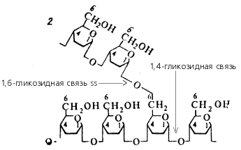 7. Из каких остатков глюкозы (a- или b-формы) построены молекулы: а) крахмала, б) целлюлозы? Фрагмент молекулы амилопектина (крахмала)