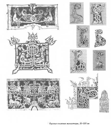 Удивительно схожи заглавные буквы инициалов новгородских средневековых рукописей с такими же буквами и стилем оформления ирландских рукописных книг. Многие исследователи связывают русское орнаментальное искусство со скандинавским. Вместе с тем известный факт, что само скандинавское искусство имеет кельтские истоки. "Кстати, в контексте северного происхождения по меньшей мере важной составной частью будущих кельтов становится вполне объяснимым длительное переживание на Севере многих черт кельтской культуры, в частности, орнаментов и форм украшений и орудий, позволяющее порой рассматривать Северную Европу как наиболее отсталую зону кельтской культурной общности". Известный факт, что вендельская археологическая культура, широко распространенная в Скандинавии, образовалась под сильным влиянием кельтской культуры, получившей в дальнейшем, уже в эпоху викингов сильнейшую подпитку с Британских островов.
