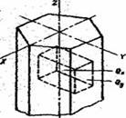 Х- электрическая ось; V- механическая ось; 2- оптическая ось Рисунок 2.2 - Кристалл кварт Ось X - электрическая, ось Y - механическая, ось Z - оптическая. Для использования в измерительных преобразователях из кристалла вырезается пластинка. При действии на пластинку сил вдоль осей X или Y происходит поляризация кристалла. На гранях, перпендикулярных оси X, появляются заряды: q = d11 Fx или q = d11(Qx- Qy)Fy (2.2) где Fx и Fy - соответствующие силы; Qx и Qy площади граней, перпендикулярных осям X и Y; d11=d12=2,31*10-12 К/Н - пьезоэлектрические модули.Возникновение заряда под действием силы Fx называется продольным пьезоэффектом, возникновение заряда под действием Fy -поперечным пьезоэффектом. Действие силы Fz вдоль оси Z не вызывает никаких электрических зарядов.