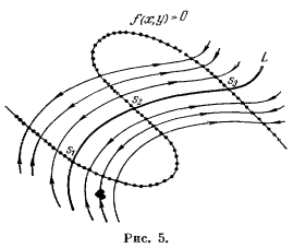 без контакта для траекторий системы (58), т. е. траектории системы (58) при С На основании всего вышеизложенного представляется геометрически очевидным, что траектории системы (58) имеют характер, представленный на рис. 20. Строго можно доказать это найдя уравнения траекторий в полярных координатах. Полагая