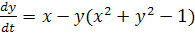 Приравнивая нулю правые части, мы находим состояния равновесия системы О (0, 0), F1 (—1, 0), F2 (1, 0) Легко убедиться, что