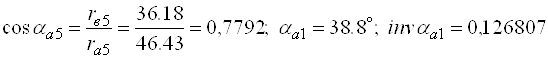 Параметри неравнозміщеного зачеплення: - кут зачеплення