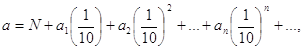 N - целая часть, а a1, a2, ... an, ... могут принимать одно из значений 0, 1,