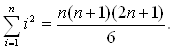 Помещенная в скобках сумма квадратов первых n чисел натурального ряда может быть преобразована по формуле, доказываемой в элементарной алгебре: