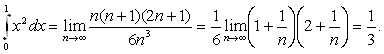 4). Переход к пределу интегральной суммы при n → ∞ дает S = 1/3. Таким образом, искомая площадь равна 1/3 кв.ед. Выполненное в этих двух примерах непосредственное вычисление определенных интегралов как пределов интегральных сумм