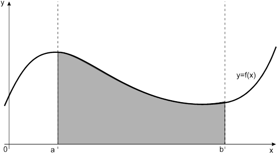Рис. 1. Криволинейная трапеция. Если f(x) непрерывна на отрезке [a, b], и известна ее первообразная F(x), то определенный интеграл от этой функции в пределах от а до b может быть вычислен по, известной всем, формуле Ньютона - Лейбница