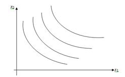безразличия представляют собой линии уровня функции Основные свойства линий безразличия. 1. Линии безразличия, соответствующие разным уровням удовлетворения потребностей, не касаются и не пересекаются. 2. Линии безразличия убывают. 3. Линии безразличия выпуклы вниз.