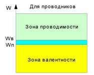 Рис. 2.2. Кристаллическая структура кремния с ковалентными связями При комнатной температуре кристаллы чистого кремния являются плохими проводниками. Они ведут себя, как изоляторы. Однако если кристаллу сообщить тепловую энергию, то некоторые электроны получат эту энергию и переместятся на более высокую орбиту, нарушая ковалентную связь. Это позволяет кристаллу проводить ток. · диапазон энергий, в котором лежит энергия электрона, удерживаемого ковалентной связью, называется зоной валентности, или валентной зоной. · диапазон энергий, в котором лежит энергия электрона, разорвавшего ковалентную связь и ставшего свободным, называется зоной проводимости. · графическое изображение этих энергетических зон называется зонной энергетической диаграммой.