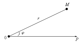 аналогично получим: Формулы позволяют находить координаты середины отрезка. ПОЛЯРНЫЕ КООРДИНАТЫ.Кроме прямоугольных декартовых координат на плоскости существуют другие системы координат, позволяющие определить положение каждой точки плоскости с помощью двух действительных чисел. Наиболее употребительной после декартовой системы координат является полярная система координат. Возьмем на плоскости точку 0, которую назовем полюсом. Проведем из полюса луч 0р, называемый полярной осью. Полюс и полярная ось образуют полярную систему координат на плоскости. (См. рис. 5)