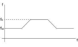 Скоростной режим работы ШД соответствует частоте управляющих импульсов, при которой tз больше периода следования импульсов (рис. 3.17). Устойчивая работа ШД в таком режиме зависит от момента нагрузки на валу двигателя. Обычно в паспортных данных ШД приводится зависимость допустимого момента нагрузки от частоты управляющих импульсов для пошагового и для скоростного режимов (рис. 3.18). При переходе от пошагового режима к скоростному частоту импульсов управления нельзя изменять скачком, т. к. из-за влияния момента инерции ротора и нагрузки в переходном режиме возможны пропуски импульсов управления (потеря синхронизации). Частота импульсов управления должна изменяться постепенно, как при переходе от пошагового режима к скоростному, так и наоборот (рис. 3.19).